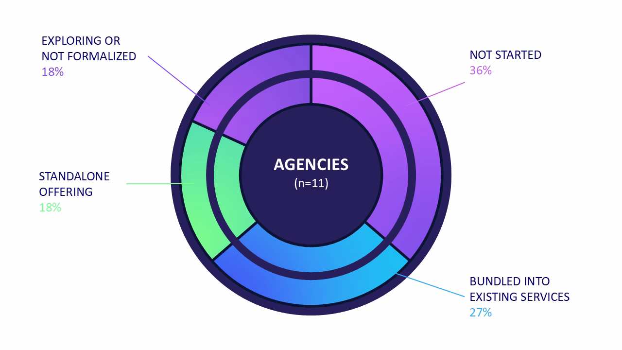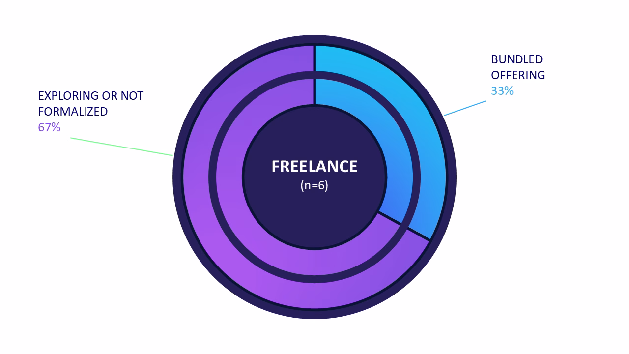 The majority of practitioners have not formalized GEO as a standalone offering. Among agencies, the dominant pattern is integration into existing SEO retainers. Freelancers are split between those bundling GEO into monthly retainers and those still educating clients without a formal scope. In-house teams universally describe GEO as “a priority” but lack formal programs, dedicated headcount, or standardized processes.